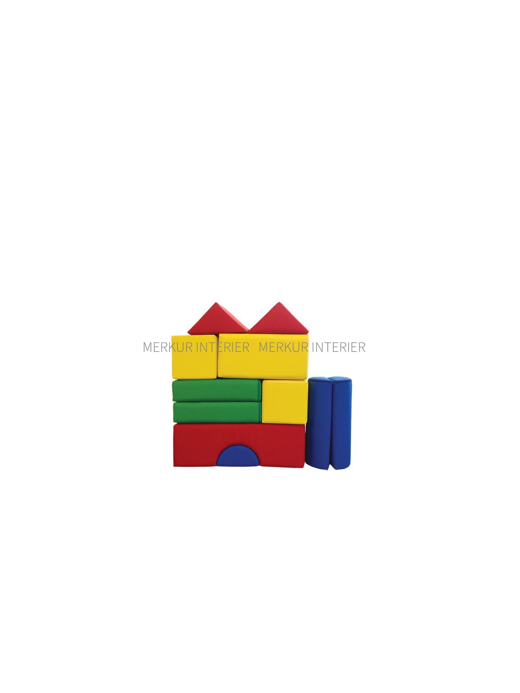 Stavebnice je vyrobena z kvalitního molitanu a KORTEXINU, potahové látky ze 100 % polyamidu, která odpuzuje vodu a nečistoty. Každý díl stavebnice je opatřen zipem. Látka je omyvatelná, špínu stačí utřít mokrým hadrem a otřít do sucha. V případě většího zašpinění lze látku prát na 30 stupňů, přičemž zip musí být uzavřený. Stavebnice je složena z těchto dílů: 2 ks půlválec 60, 1 ks půlválec 30, 1 ks most, 2 ks střecha 30, 1 ks kvádr 30, 2 ks kvádr 15, 2 ks kostka. Rozměry jednotlivých prvků ve stavebnicích: střecha 30…30 x 30 x 30 cm, střecha 60…60 x 30 x 30 cm, most…90 x 30 x 30 cm, půlválec 30…průměr 30 cm a délka 30 cm, půlválec 60…průměr 30 cm a délka 60 cm, válec…průměr 30 cm a délka 60 cm, kostka…30 x 30 x 30 cm, malý trojúhelník…30 x 30 x 30 cm, velký trojúhelník…60 x 60 x 30 cm, kvádr 15…60 x 30 x 15 cm, kvádr 30…60 x 30 c 30 cm. Všechny ceny, které naleznete v našem katalogu „Školní a kancelářský nábytek“ a na internetových stránkách nebo v e-shopu, jsou včetně DPH. Doprava školního nábytku firmou Merkur Interier s.r.o. je do všech základních škol, mateřských škol, středních škol, vysokých škol a obcí zdarma. Dále lze objednat i montážní práce nebo roznos školního nábytku po škole. Jelikož jsme chráněná dílna, poskytujeme školám náhradní plnění.