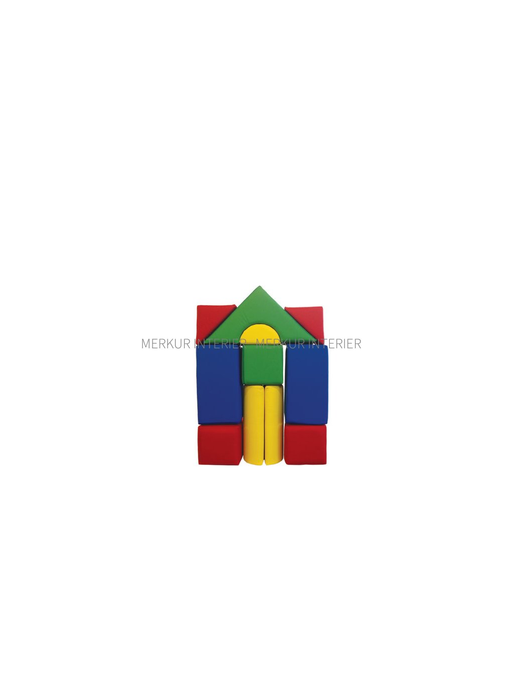 Stavebnice je vyrobena z kvalitního molitanu a KORTEXINU, potahové látky ze 100 % polyamidu, která odpuzuje vodu a nečistoty. Každý díl stavebnice je opatřen zipem. Látka je omyvatelná, špínu stačí utřít mokrým hadrem a otřít do sucha. V případě většího zašpinění lze látku prát na 30 stupňů, přičemž zip musí být uzavřený. Stavebnice je složena z těchto dílů: 1 ks velký trojúhelník, 2 ks půlválec 60, 1 ks půlválec 30, 2 ks střecha 30, 2 ks kvádr 30, 3 ks kostka. Rozměry jednotlivých prvků ve stavebnicích: střecha 30…30 x 30 x 30 cm, střecha 60…60 x 30 x 30 cm, most…90 x 30 x 30 cm, půlválec 30…průměr 30 cm a délka 30 cm, půlválec 60…průměr 30 cm a délka 60 cm, válec…průměr 30 cm a délka 60 cm, kostka…30 x 30 x 30 cm, malý trojúhelník…30 x 30 x 30 cm, velký trojúhelník…60 x 60 x 30 cm, kvádr 15…60 x 30 x 15 cm, kvádr 30…60 x 30 c 30 cm. Všechny ceny, které naleznete v našem katalogu „Školní a kancelářský nábytek“ a na internetových stránkách nebo v e-shopu, jsou včetně DPH. Doprava školního nábytku firmou Merkur Interier s.r.o. je do všech základních škol, mateřských škol, středních škol, vysokých škol a obcí zdarma. Dále lze objednat i montážní práce nebo roznos školního nábytku po škole. Jelikož jsme chráněná dílna, poskytujeme školám náhradní plnění.