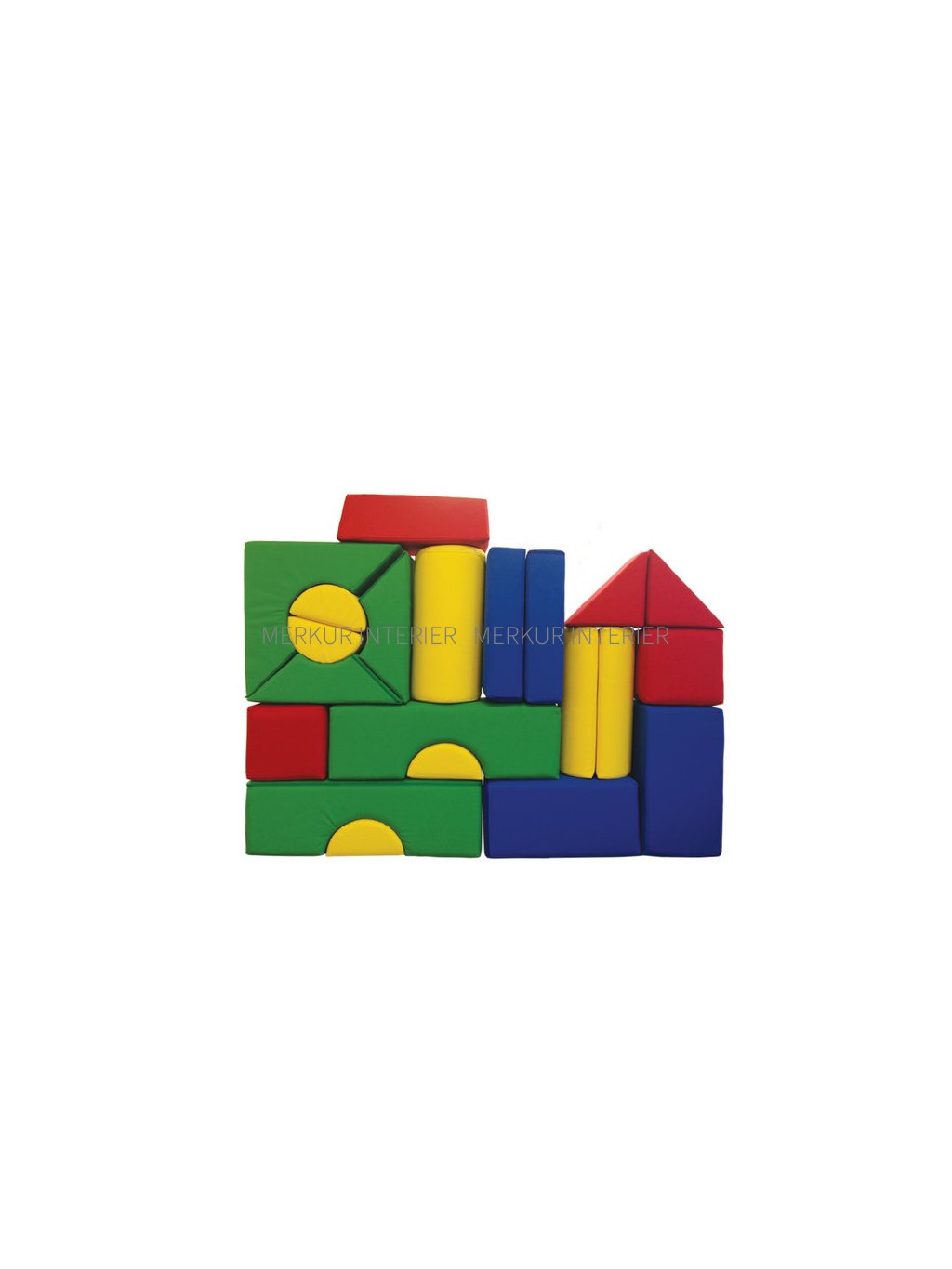 Stavebnice je vyrobena z kvalitního molitanu a KORTEXINU, potahové látky ze 100 % polyamidu, která odpuzuje vodu a nečistoty. Každý díl stavebnice je opatřen zipem. Látka je omyvatelná, špínu stačí utřít mokrým hadrem a otřít do sucha. V případě většího zašpinění lze látku prát na 30 stupňů, přičemž zip musí být uzavřený. Stavebnice je složena z těchto dílů: 2 ks kvádr 30, 2 ks kvádr 15, 2 ks kostka, 1 ks velký trojúhelník, 2 ks malý trojúhelník, 1 ks válec, 2 ks půlválec 60, 4 ks půlválec 30, 2 ks most, 1 ks střecha 60, 2 ks střecha 30. Rozměry jednotlivých prvků ve stavebnicích: střecha 30…30 x 30 x 30 cm, střecha 60…60 x 30 x 30 cm, most…90 x 30 x 30 cm, půlválec 30…průměr 30 cm a délka 30 cm, půlválec 60…průměr 30 cm a délka 60 cm, válec…průměr 30 cm a délka 60 cm, kostka…30 x 30 x 30 cm, malý trojúhelník…30 x 30 x 30 cm, velký trojúhelník…60 x 60 x 30 cm, kvádr 15…60 x 30 x 15 cm, kvádr 30…60 x 30 c 30 cm. Všechny ceny, které naleznete v našem katalogu „Školní a kancelářský nábytek“ a na internetových stránkách nebo v e-shopu, jsou včetně DPH. Doprava školního nábytku firmou Merkur Interier s.r.o. je do všech základních škol, mateřských škol, středních škol, vysokých škol a obcí zdarma. Dále lze objednat i montážní práce nebo roznos školního nábytku po škole. Jelikož jsme chráněná dílna, poskytujeme školám náhradní plnění.