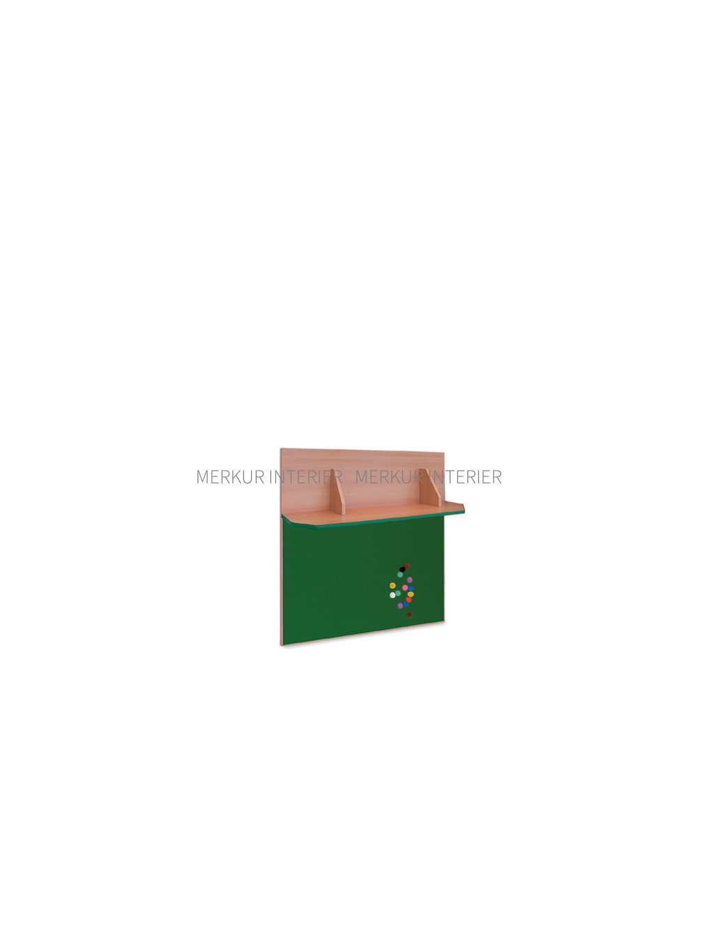 Magnetická nástěnka je vyrobena z laminodesky o tloušťce 18 mm od českého výrobce, povrch je kovový komaxitovaný v barvě RAL. Polička je složena z korpusu, který je vyroben z laminodesky o tloušťce 18 mm od českého výrobce. Jednotlivé díly korpusu poličky jsou smontovány pomocí truhlářských spojů na sucho. Toto konstrukční řešení naší firmy Merkur Interier s.r.o. je právě výhodné ve školách, kde může dojít vlivem větší zátěže k poškození části poličky. Potom je možná výměna pouze části poškozené poličky. Součástí poličky jsou bočnicové zarážky knih umístěných napevno. Na přední straně poličky je strojně nalepena hrana ABS tloušťky 2 mm v barvách RAL. Půdorysný rozměr magnetické nástěnky s jednopoličkou je 80 x 25 (šířka x hloubka), výška 105 cm. Magnetická nástěnka s jednopoličkou se zavěšuje na stěnu pomocí vrutů a hmoždinek. Součástí nástěnky je 21 barevných magnetů. Nástěnka má široké možnosti využití ve školách, je vhodná jako informační a vzdělávací plocha, kterou lze rychle aktualizovat, nebo pro vystavení dětských prací a výkresů. Magnetická nástěnka je dodávána smontovaná a obalená folií. Lze ji omývat vodou a čistit běžnými saponáty, poté je nutné ji utřít do sucha. Všechny ceny, které naleznete v našem katalogu „Školní a kancelářský nábytek“ a na internetových stránkách nebo v e-shopu, jsou včetně DPH. Doprava školního nábytku firmou Merkur Interier s.r.o. je do všech základních škol, mateřských škol, středních škol, vysokých škol a obcí zdarma. Jelikož jsme chráněná dílna, poskytujeme školám náhradní plnění.Doplňkové parametry