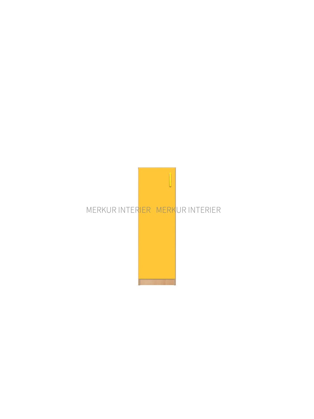 Policový modul je složen z korpusu, který je vyroben z laminodesky o tloušťce 18 mm od českého výrobce, sololaku bílé barvy tloušťky 3,2 mm a dvířek z lamina nebo barevné dvířkoviny. Jednotlivé díly korpusu modulu jsou smontovány pomocí truhlářských spojů na sucho. Toto konstrukční řešení naší firmy Merkur Interier s.r.o. je právě výhodné ve školách, kde může dojít vlivem větší zátěže k poškození části modulu. Potom je možná výměna pouze části poškozeného modulu. Dvířka poličkového modulu jsou naložená na korpus, tzv. naložená dvířka s otvíráním na levou stranu. Panty jsou používány NK, otevírané na 90° s možností seřízení dvířek všemi směry a dotahem ke korpusu. Na korpusu je strojně nalepena ABS tloušťky 2 mm v barvě korpusu, barva úchytek je v barvě RAL. Součástí modulu jsou 3 police s výškovou aretací, ohraněny ABS 2 mm. Půdorysný rozměr modulu je 40 x 45 (šířka x hloubka), výška 126 cm. Součástí modulu je sokl vysoký 60 mm a rektifikační šrouby, které se používají při nerovnosti podlahy. Policový modul je určený pro skříňové sestavy do mateřských škol a základních škol nebo družin. Policový modul je vhodný pro umístění hraček, knih nebo jiných školních potřeb. Modul je dodáván smontovaný a obalený fólií. Policový modul lze omývat vodou a čistit běžnými saponáty, poté je nutné utřít regál do sucha. Všechny ceny, které naleznete v našem katalogu „Školní a kancelářský nábytek“ a na internetových stránkách nebo v e-shopu, jsou včetně DPH. Doprava školního nábytku firmou Merkur Interier s.r.o. je do všech základních škol, mateřských škol, středních škol, vysokých škol a obcí zdarma. Jelikož jsme chráněná dílna, poskytujeme školám náhradní plnění.Doplňkové parametry