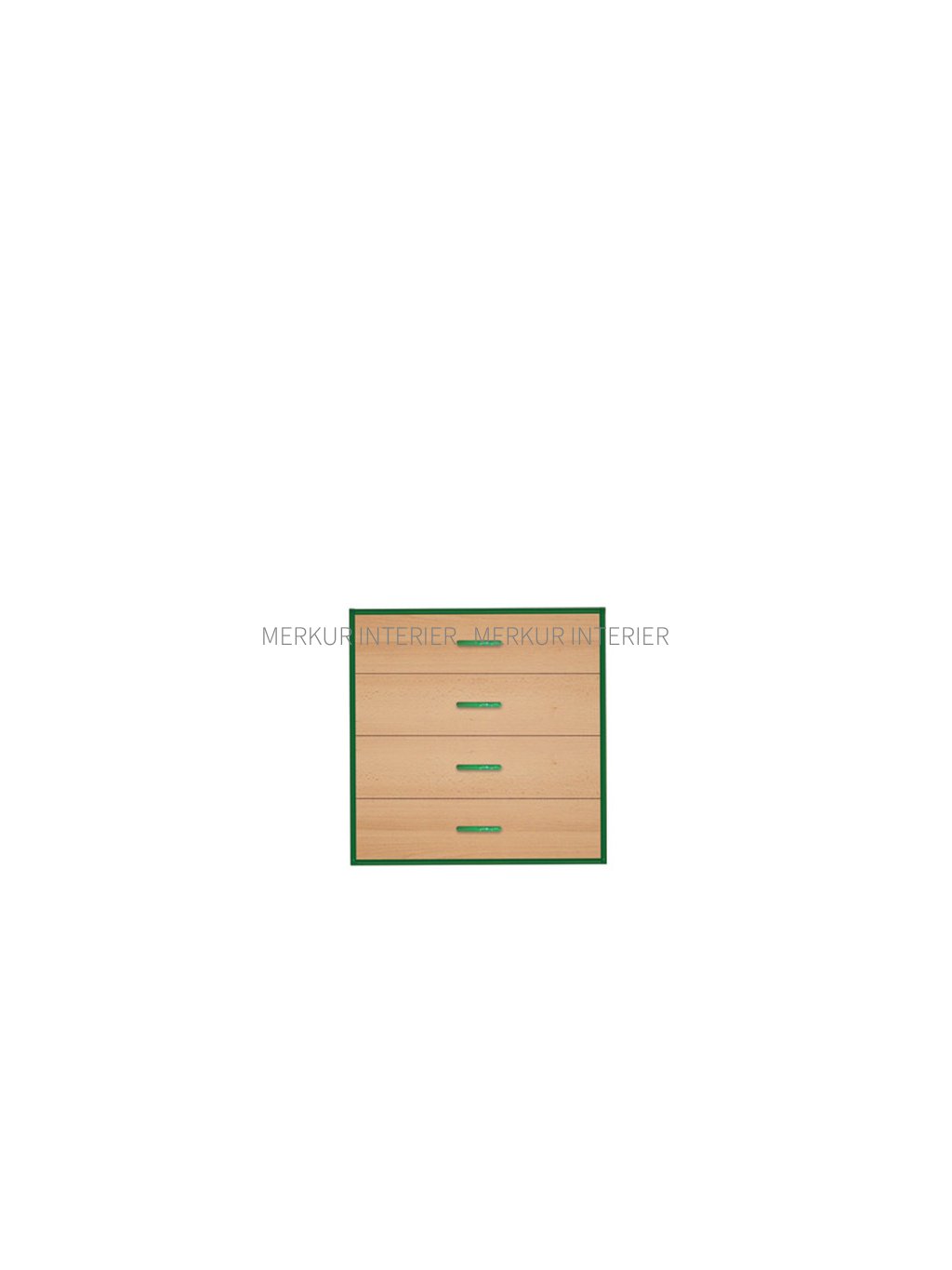 Zásuvkový modul je složen z korpusu, který je vyroben z laminodesky v různých barvách o tloušťce 18 mm od českého výrobce a sololaku bílé barvy tloušťky 3,2 mm. Jednotlivé díly korpusu jsou smontovány pomocí truhlářských spojů na sucho. Toto konstrukční řešení naší firmy Merkur Interier s.r.o. je právě výhodné ve školách, kde může dojít vlivem větší zátěže k poškození části modulu. Potom je možná výměna pouze části poškozeného modulu. Na korpusu je strojně nalepena ABS tloušťky 2 mm v barvě RAL. Skříňka je složena ze 4 zásuvek, které lze opatřit zámkem FAB nebo centrálním zamykáním. Zásuvky jsou řešeny jako polovýsuv (zásuvky lze vytáhnout do 2/3 celkové hloubky zásuvky) na kovových pojezdech. Zásuvky jsou vsazené do korpusu, tzv.vložená čílka. Tyto čílka jsou vyrobená z laminodesky také o tloušťce 18 mm a hranou olepenou ABS 0,5 mm. Dna zásuvek jsou vyrobena ze sololaku. Školní skříňka má kovové úchytky obloukového tvaru v barvě RAL. Tento modul lze dovybavit kovovýma nožičkama v různých barvách RAL s plastovou zátkou (nohy výškově nestavitelné nebo stavitelné s rektifikačními šrouby - při nerovnosti podlahy), za příplatek. Půdorysný rozměr skříňky je 80 x 45 (šířka x hloubka), výška 80 cm. Zásuvkový modul je určený pro skříňové sestavy do mateřských školek nebo základních škol a družin. Zásuvkový modul je vhodný pro umístění hraček, knih nebo jiných školních potřeb. Modul je dodáván smontovaný a obalený fólií. Zásuvkový modul lze omývat vodou a čistit běžnými saponáty, poté je nutné utřít do sucha. Všechny ceny, které naleznete v našem katalogu „Školní a kancelářský nábytek“ a na internetových stránkách nebo v e-shopu, jsou včetně DPH. Doprava školního nábytku firmou Merkur Interier s.r.o. je do všech základních škol, mateřských škol, středních škol, vysokých škol a obcí zdarma. Jelikož jsme chráněná dílna, poskytujeme školám náhradní plnění.Doplňkové parametry