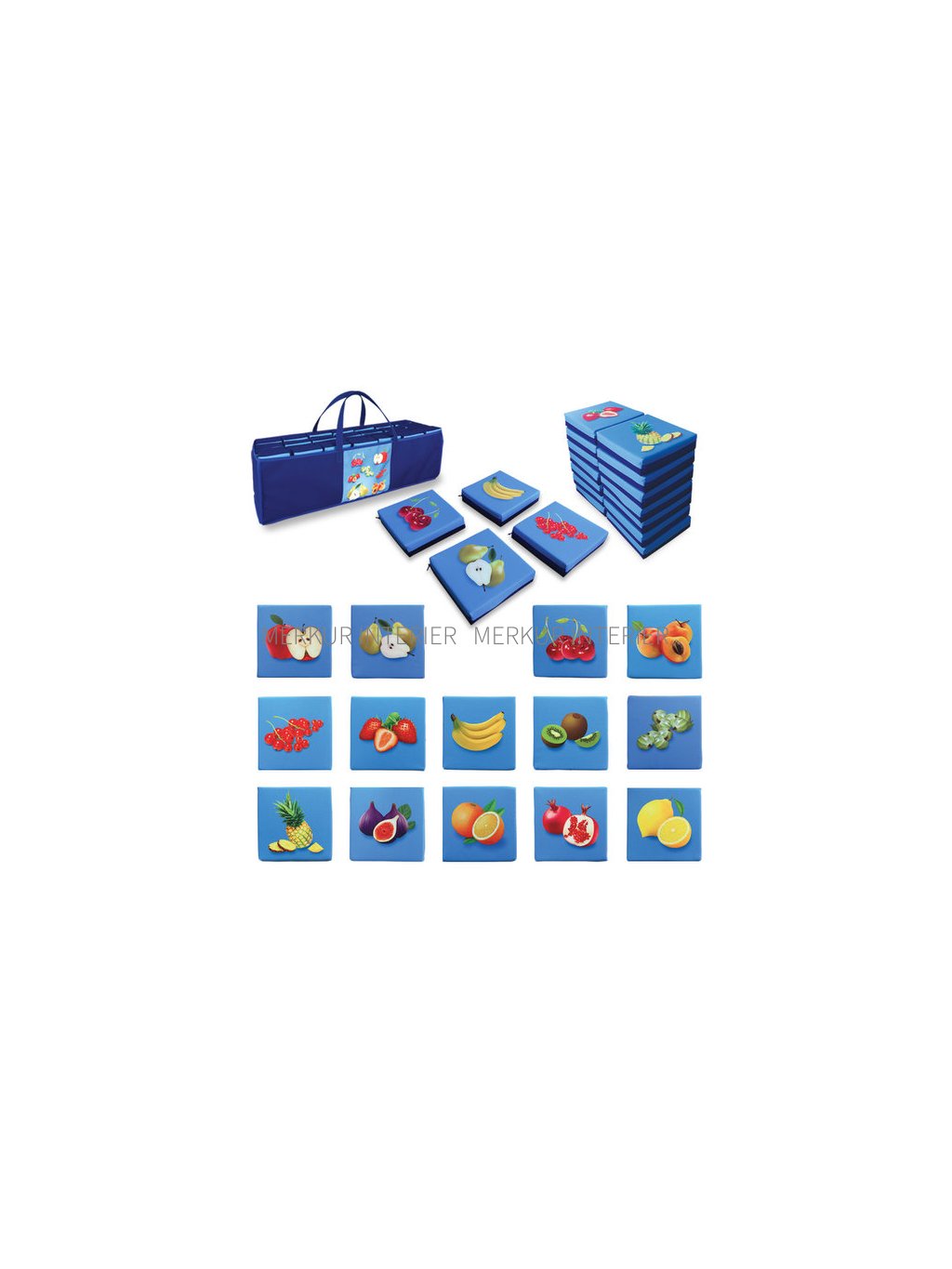 Molitanové pexeso se skládá z 28 hracích molitanových kostek o rozměru 20 x 20 x 5 cm ušitých z kortexinu. Zadní část a boky hracích kostek je tmavě modré barvy, na polích jsou různá ovoce. Molitanové domino je dodáváno v pevné tašce z kortexinu o rozměru 50 x 20 x 28 cm. Potahová látka – kortexin – je vyrobena ze 100 % polyamidu a odpuzuje vodu a nečistoty. Při menším znečištění lze látku vyčistit kartáčkem s mýdlovou vodou. Nelze prát v pračce!!! Všechny ceny, které naleznete v našem katalogu „Školní a kancelářský nábytek“ a na internetových stránkách nebo v e-shopu, jsou včetně DPH. Doprava školního nábytku firmou Merkur Interier s.r.o. je do všech základních škol, mateřských škol, středních škol, vysokých škol a obcí zdarma. Jelikož jsme chráněná dílna, poskytujeme školám náhradní plnění.Doplňkové parametry