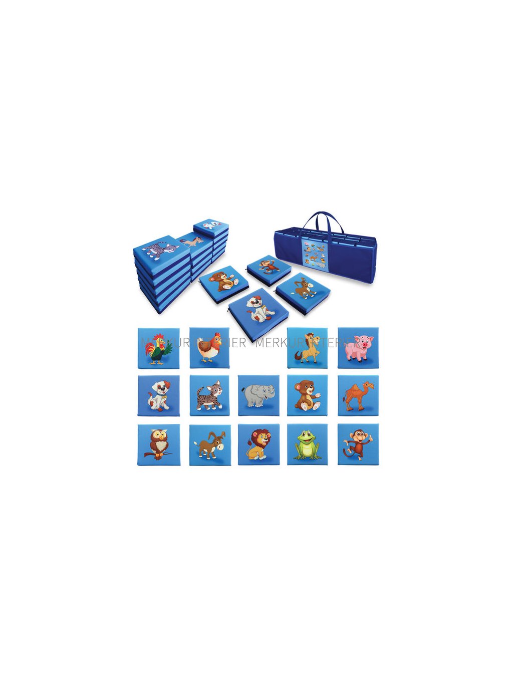 Molitanové pexeso se skládá z 28 hracích molitanových kostek o rozměru 20 x 20 x 5 cm ušitých z kortexinu. Zadní část a boky hracích kostek je tmavě modré barvy, na polích jsou různá zvířata. Molitanové domino je dodáváno v pevné tašce z kortexinu o rozměru 50 x 20 x 28 cm. Potahová látka – kortexin – je vyrobena ze 100 % polyamidu a odpuzuje vodu a nečistoty. Při menším znečištění lze látku vyčistit kartáčkem s mýdlovou vodou. Nelze prát v pračce!!! Všechny ceny, které naleznete v našem katalogu „Školní a kancelářský nábytek“ a na internetových stránkách nebo v e-shopu, jsou včetně DPH. Doprava školního nábytku firmou Merkur Interier s.r.o. je do všech základních škol, mateřských škol, středních škol, vysokých škol a obcí zdarma. Jelikož jsme chráněná dílna, poskytujeme školám náhradní plnění.Doplňkové parametry