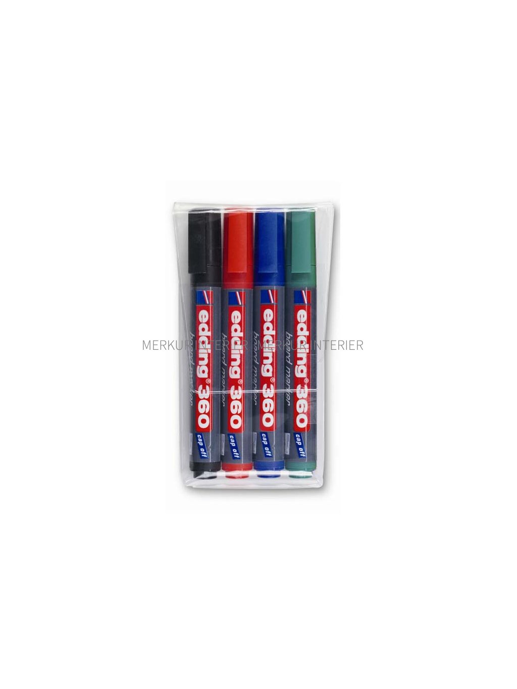 Fixy jsou určené pro popis bílých tabulí. Sada obsahuje 4 fixy barvy černá, modrá, červená a zelená. Hrot fixy má kulatý tvar a rozměr je 1,5 – 3 mm. Popisovač fix Edding 360 je z plastu a nelze rozšroubovat. Fix je plnitelný náhradním inkoustem BTK 25. Rychleschnoucí kvalitní inkoust se slabým zápachem, odolný vůči světlu. Snadno stíratelný nasucho. Všechny ceny, které naleznete v našem katalogu „Školní a kancelářský nábytek“ a na internetových stránkách nebo v e-shopu, jsou včetně DPH. Doprava školního nábytku firmou Merkur Interier s.r.o. je do všech základních škol, mateřských škol, středních škol, vysokých škol a obcí zdarma. Jelikož jsme chráněná dílna, poskytujeme školám náhradní plnění.Doplňkové parametry