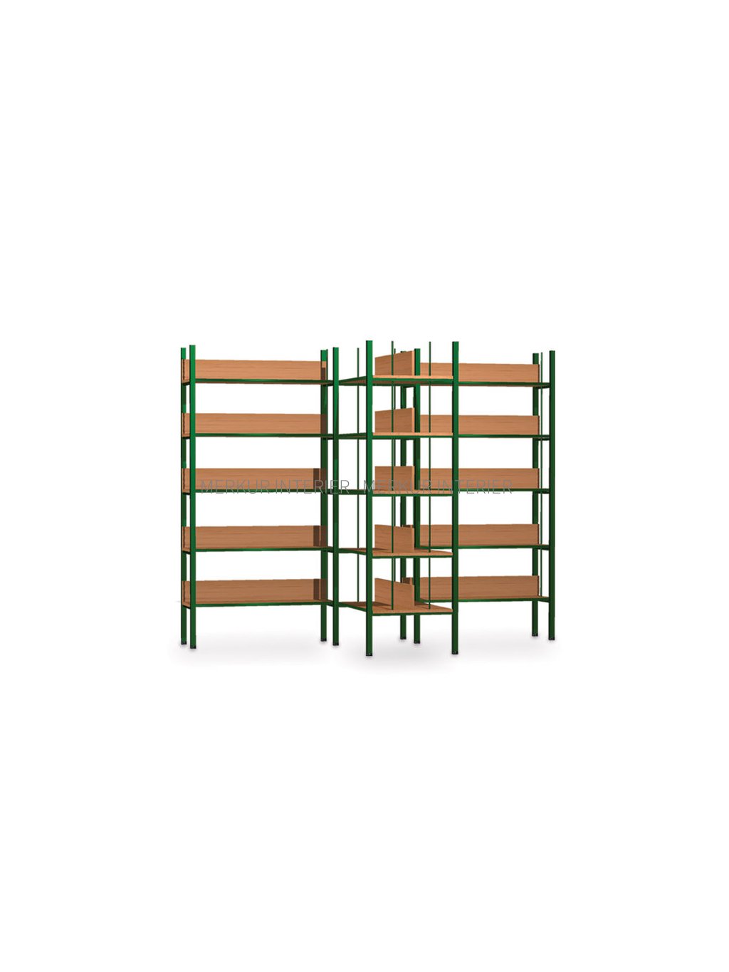 Sestava 2 jednostranných a 1 oboustranného regálu je vyrobena z velice odolných materiálů a je vhodná pro použití do školních knihoven, informačních center, kabinetů, archivu apod. Z důvodu otevřených poliček se nehodí do společných otevřených školních prostor. Celková nosnost regálu je 150 kg /nosnost jedné poličky je 30kg/
