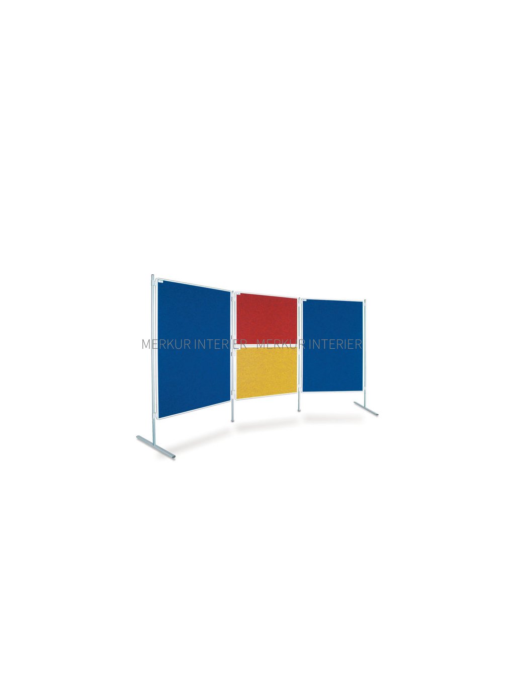 Paraván se skládá z 2 ks nohy T190, 2 ks nohy I190, 2 ks textilní nástěnky 150x100cm a 2 ks textilní nástěnky 75x100cm. Barevné provedení nástěnek nám, prosím, upřesněte v objednávce.