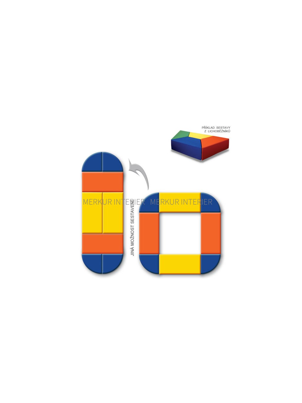 Sezení je složeno ze 4 kusů sedacích kostek 160152 kvádr, rozměr 106 x 53 x 38 cm a 4 kusů 160151 čtvrtkruh, rozměr poloměr 53 cm, výška 38 cm. Velikost složené sestavy je 318 x 106 x 38 cm. Sedací kostky jsou vyrobeny z pevného extrudovaného materiálu nastaveného vrstvou molitanu. Vrchní potah je z velmi kvalitní potahové látky KORTEXIN, který je vysoce odolný proti znečištění. Látka je omyvatelná, špínu stačí utřít mokrým hadrem a otřít do sucha. V případě většího zašpinění lze látku prát na 30 stupňů. Sedací kostka je variabilní a lehce přenosná. Nosnost je 150 kg. Možnost provedení v jednobarevné nebo vícebarevné variantě. Všechny ceny, které naleznete v našem katalogu „Školní a kancelářský nábytek“ a na internetových stránkách nebo v e-shopu, jsou včetně DPH. Doprava školního nábytku firmou Merkur Interier s.r.o. je do všech základních škol, mateřských škol, středních škol, vysokých škol a obcí zdarma. Dále lze objednat i montážní práce nebo roznos školního nábytku po škole. Jelikož jsme chráněná dílna, poskytujeme školám náhradní plnění.Doplňkové parametry