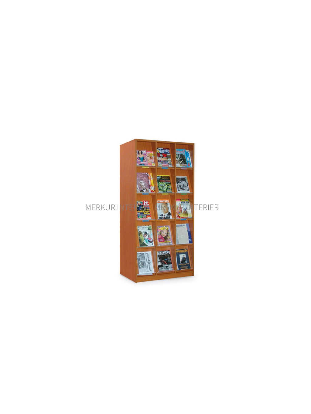 Školní skříň na časopisy s úložným prostorem je vyrobena z velice odolných materiálů a je vhodný pro použití do školních knihoven, informačních center, kabinetů, archivu apod. Z důvodu otevřených poliček se nehodí do společných otevřených školních prostor.