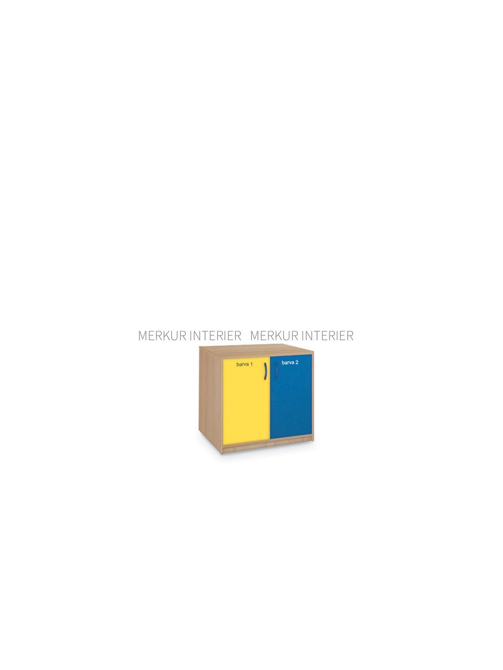 Školní policová skříň je složena z korpusu skříně, který je zhotoven z laminodesky tloušťky 18 mm od českého výrobce, sololaku tloušťky 3,2 mm bílé barvy a barevné dvířkoviny v UNI barvách. Jednotlivé díly korpusu skříně jsou smontovány pomocí truhlářských spojů na sucho. Toto konstrukční řešení naší firmy Merkur Interier s.r.o. je právě výhodné ve školách, kde může dojít vlivem větší zátěže k poškození části skříně. Poté stačí vyměnit pouze poškozený díl. Dvířka skříně jsou zasazena do korpusu, tzv. vložená dvířka. Panty pro skříň jsou používány NK, otevírané na 90° s možností seřízení dvířek všemi směry a dotahem ke korpusu. Školní policová skříň má kovové úchytky v obloukovém tvaru, v barvě RAL. Součástí skříně je sokl výšky 60 mm, 2 barevná dvířka a 2 police na podpěrkách s výškovou aretací. Barvy dvířek a barevných úchytek lze libovolně kombinovat. Na dvířkách je strojně nalepena ABS hrana tloušťky 2 mm v UNI barvách, korpus a police z přední strany jsou ohraněny ABS 2 mm v barvě laminodesky. Školní skříň lze dovybavit větším množstvím poliček, rektifikačními šrouby (při nerovnosti podlahy) a zámkem FAB. Půdorysný rozměr skříně je 80 x 45 cm (šířka x hloubka), výška 68,5 cm. Školní policová nízká skříň je vhodná do mateřských a základních škol a družin pro přehledné uložení školních pomůcek a kancelářských potřeb nebo také například do mateřských škol pro uložení oblečení pro děti. Skříň je dodávána celá smontovaná, obalená fólií. Demontovány jsou podpěrky, úchytky a poličky. Skříň lze omývat vodou a čistit běžnými saponáty, poté je nutné utřít skříň do sucha. Všechny ceny, které naleznete v našem katalogu „Školní a kancelářský nábytek“ a na internetových stránkách nebo v e-shopu, jsou včetně DPH. Doprava školního nábytku firmou Merkur Interier s.r.o. je do všech základních škol, mateřských škol, středních škol, vysokých škol a obcí zdarma. Jelikož jsme chráněná dílna, poskytujeme školám náhradní plnění.Doplňkové parametry