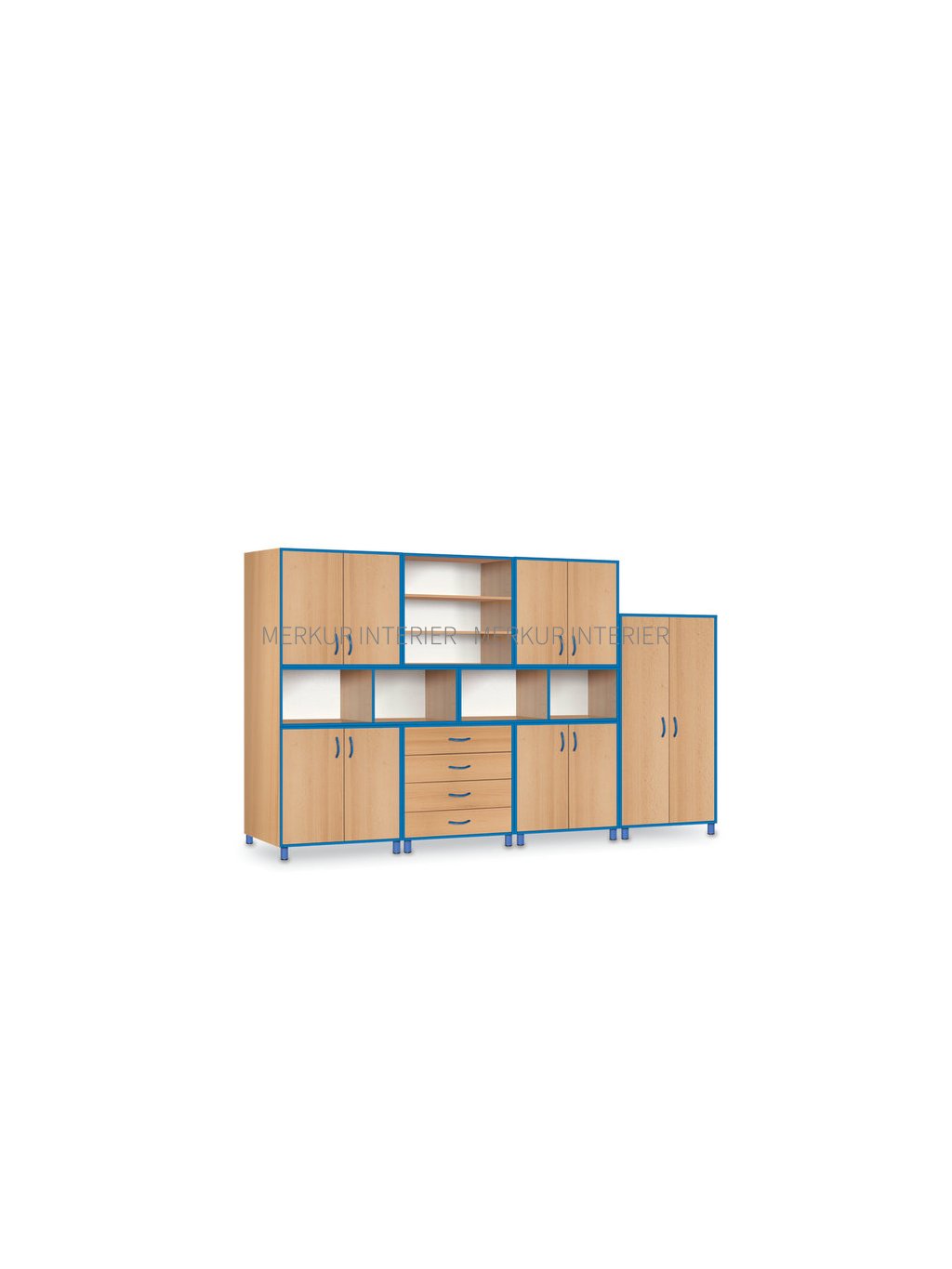 Skříňové sestavy vám poskytnou dostatečný úložný prostor pro umístění školních potřeb, hraček nebo knih. Skříňová sestava je určena do mateřských a základních škol, družin, dětských center, nebo třeba do dětského pokojíčku. Kovové nohy jsou vždy v chromu.