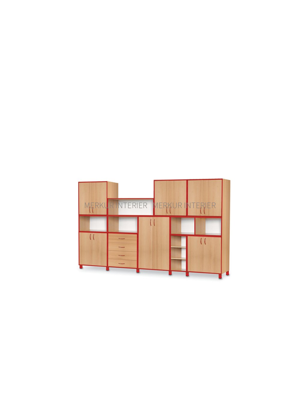 Skříňové sestavy vám poskytnou dostatečný úložný prostor pro umístění školních potřeb, hraček nebo knih. Skříňová sestava je určena do mateřských a základních škol, družin, dětských center, nebo třeba do dětského pokojíčku. Kovové nohy jsou vždy v chromu.