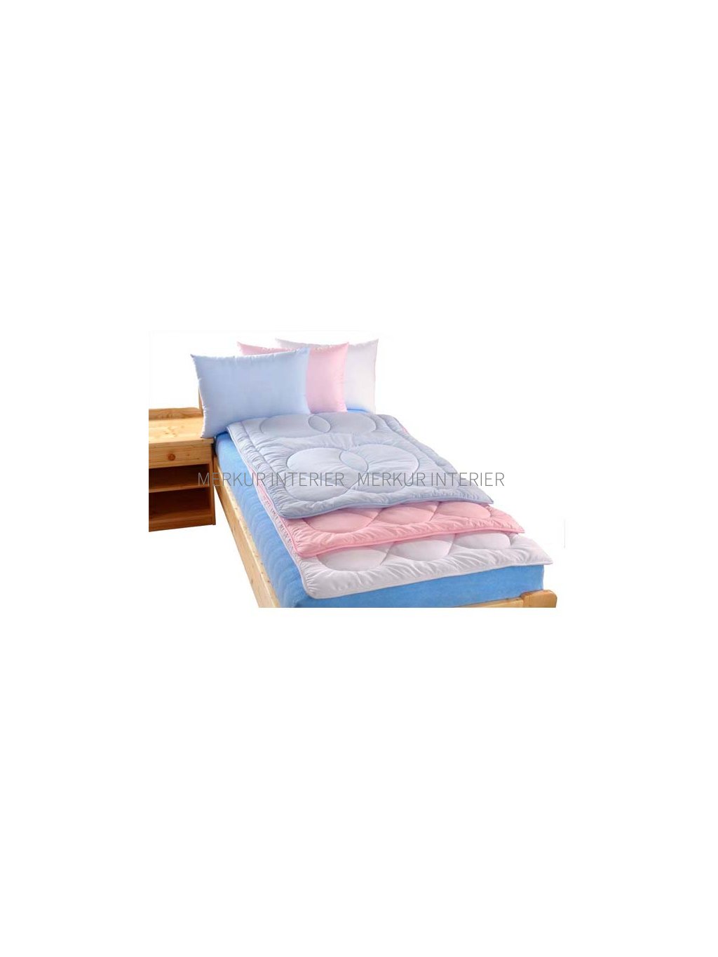 Dětská souprava z prošívané deky pro celoroční použití a neprošívaného polštáře v bílé barvě. Vhodné i pro děti do 3 let. Cena platí pro odebrání minimálně 10 ks.