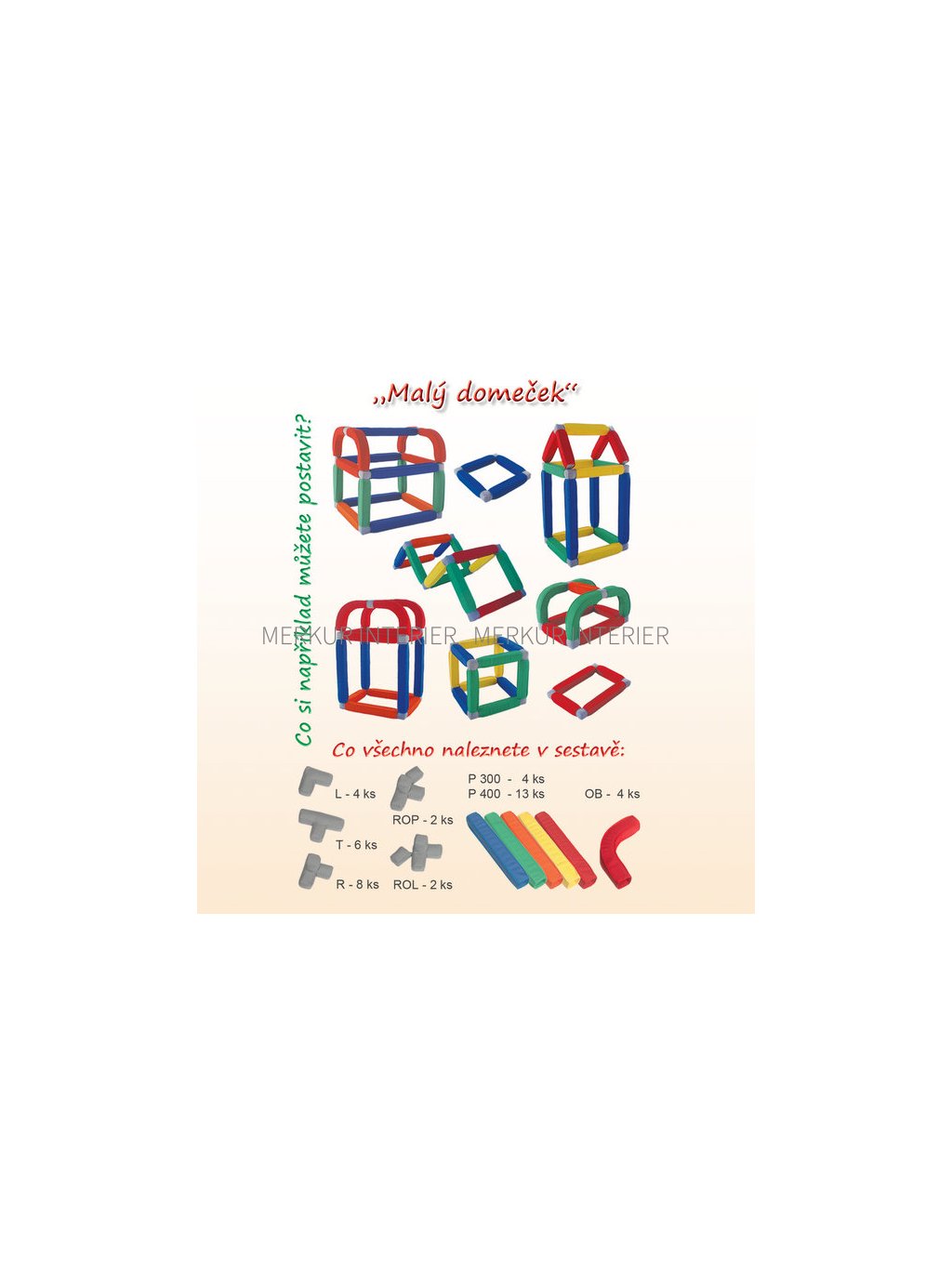 Stavebnice MÍJA hravým způsobem rozvíjí u dětí fantazii a tvořivost, jemnou motoriku, představivost a orientaci v prostoru. Barevné díly, červené, zelené, žluté, modré a oranžové barvy děti snadným způsobem spojí šedou spojkou do různých prostorových tvarů. Ze stavebnice MÍJA lze postavit domečky, prolézačky, věžičky, ohrady, překážkové dráhy, či prostorové tvary, např. koule, krychle, válce, nebo tvary rovinné, např. kruh, čtverec, trojúhelník, silnice nebo skákací panák. Jednotlivé díly jsou měkké a nemohou dětem při sestavování nijak ublížit. Sada „Domeček“ obsahuje tyto díly: 40 ks rovný díl různobarevný 30 cm, 6 ks rovný díl různobarevný 50 cm a spojky šedé barvy L 4 ks, T 6 ks, R 8 ks, ROP 2 ks, TO 2 ks, RK 4 ks, X 3 ks, ROL 2 ks. Stavebnice MÍJA je vyrobena z kvalitního molitanu a KORTEXINU, potahové látky ze 100 % polyamidu, která odpuzuje vodu a nečistoty. Při větším znečištění lze jednotlivé díly stavebnice omýt vlažnou vodou s běžnými pracími prostředky, nebo prát v pračce na 30 stupňů bez ždímání. Stavebnici dodáváme v barevné tašce z pevného KORTEXINU. Všechny ceny, které naleznete v našem katalogu „Školní a kancelářský nábytek“ a na internetových stránkách nebo v e-shopu, jsou včetně DPH. Doprava školního nábytku firmou Merkur Interier s.r.o. je do všech základních škol, mateřských škol, středních škol, vysokých škol a obcí zdarma. Dále lze objednat i montážní práce nebo roznos školního nábytku po škole. Jelikož jsme chráněná dílna, poskytujeme školám náhradní plnění.