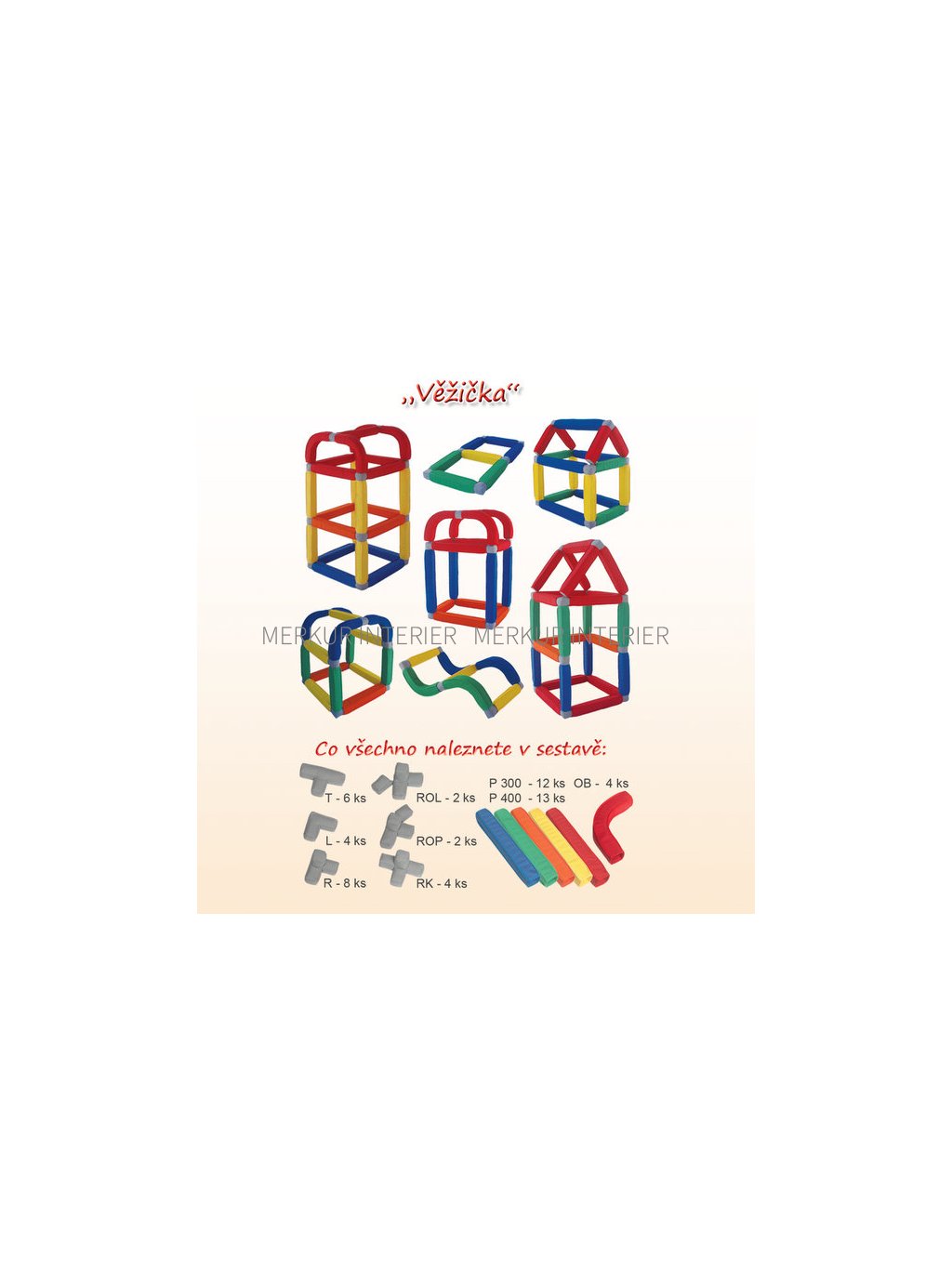 Stavebnice MÍJA hravým způsobem rozvíjí u dětí fantazii a tvořivost, jemnou motoriku, představivost a orientaci v prostoru. Barevné díly, červené, zelené, žluté, modré a oranžové barvy děti snadným způsobem spojí šedou spojkou do různých prostorových tvarů. Ze stavebnice MÍJA lze postavit domečky, prolézačky, věžičky, ohrady, překážkové dráhy, či prostorové tvary, např. koule, krychle, válce, nebo tvary rovinné, např. kruh, čtverec, trojúhelník, silnice nebo skákací panák. Jednotlivé díly jsou měkké a nemohou dětem při sestavování nijak ublížit. Sada „Věžička“ obsahuje tyto díly: 12 ks rovný díl různobarevný 30 cm, 13 ks rovný díl různobarevný 40 cm, 4 ks oblouk a spojky šedé barvy T 6 ks, L 4 ks, R 8 ks, ROL 2 ks, ROP 2 ks, RK 4 ks. Stavebnice MÍJA je vyrobena z kvalitního molitanu a KORTEXINU, potahové látky ze 100 % polyamidu, která odpuzuje vodu a nečistoty. Při větším znečištění lze jednotlivé díly stavebnice omýt vlažnou vodou s běžnými pracími prostředky, nebo prát v pračce na 30 stupňů bez ždímání. Stavebnici dodáváme v barevné tašce z pevného KORTEXINU. Všechny ceny, které naleznete v našem katalogu „Školní a kancelářský nábytek“ a na internetových stránkách nebo v e-shopu, jsou včetně DPH. Doprava školního nábytku firmou Merkur Interier s.r.o. je do všech základních škol, mateřských škol, středních škol, vysokých škol a obcí zdarma. Dále lze objednat i montážní práce nebo roznos školního nábytku po škole. Jelikož jsme chráněná dílna, poskytujeme školám náhradní plnění.
